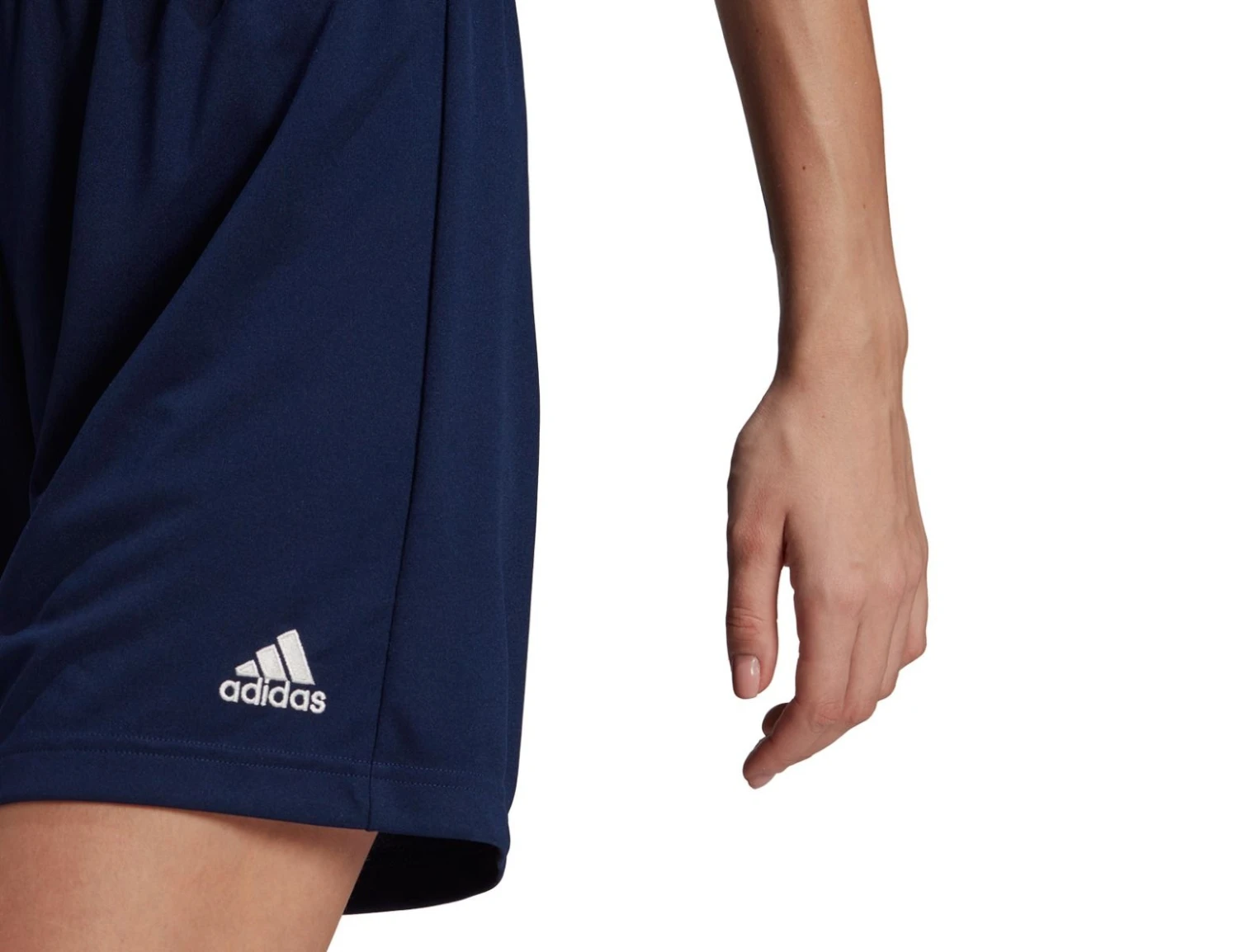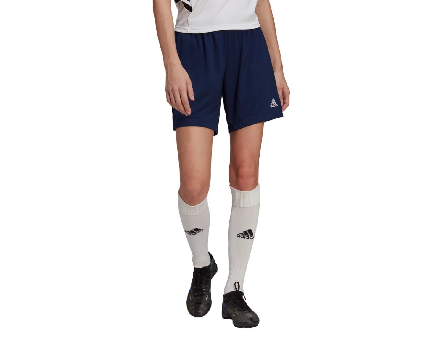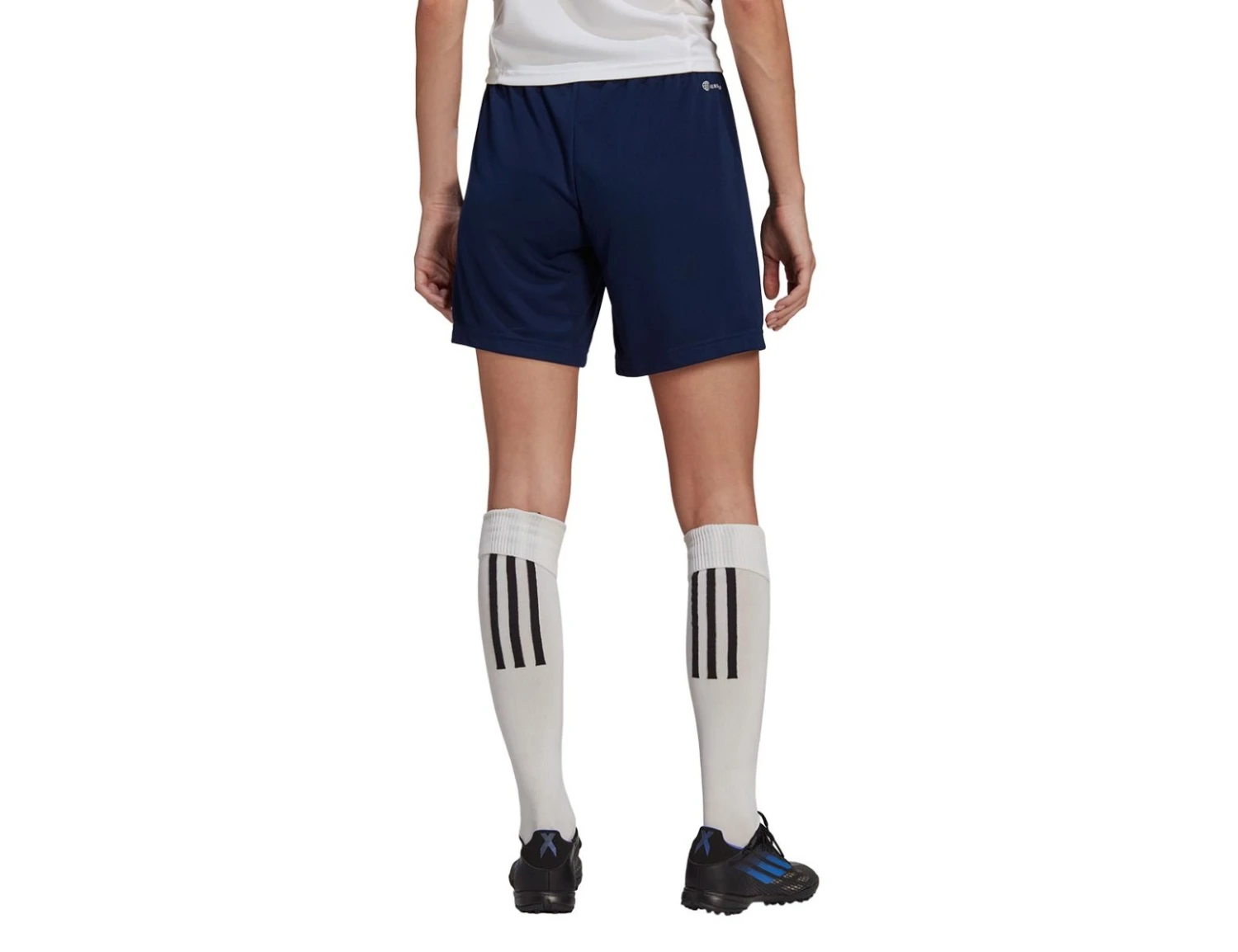 The dark blue adidas Entrada 22 shorts for women have a clean, classic design with AEROREADY technology to keep you dry and fresh. The waistband is elastic and has a drawstring. The football shorts are made with 100% recycled polyester.