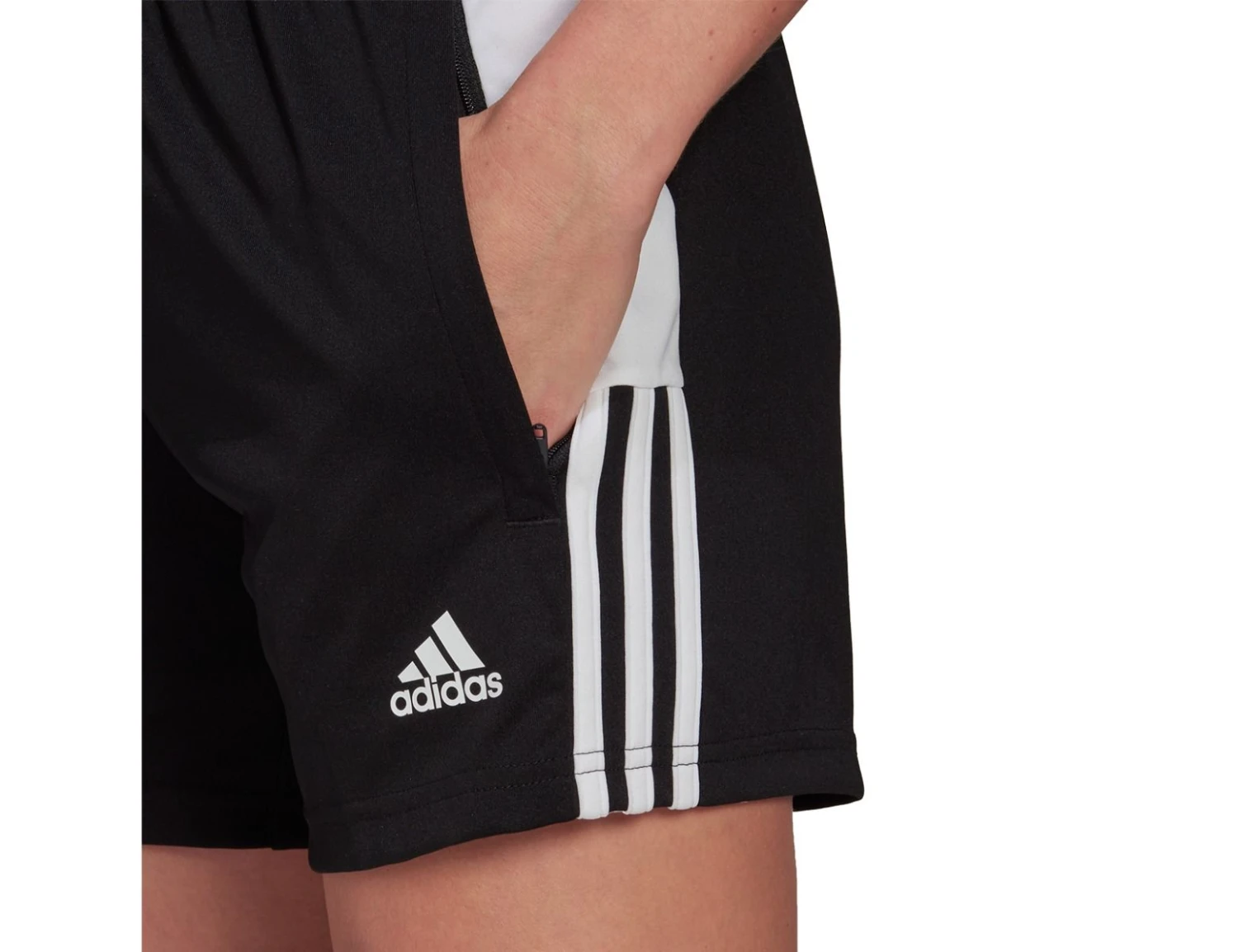 The adidas Tiro Training Shorts for women are made of a smooth fabric and moisture-regulating AEROREADY technology. The two side pockets have a zipper. The shorts have a regular fit and have an elastic waistband with drawstring.