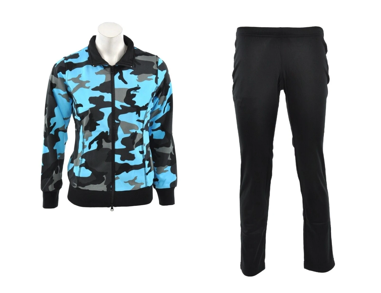 Der Australian Women Tracksuit ist ein blauer Trainingsanzug für Damen. Die Jacke ist blau mit Camouflage Print und hat Seitentaschen. Auf der Brust ist das Australian Logo. Bund und Ärmelbündchen sind elastisch. Die Hose ist schwarz, hat ebenfalls das Australian Logo und einen elastischen Bund.