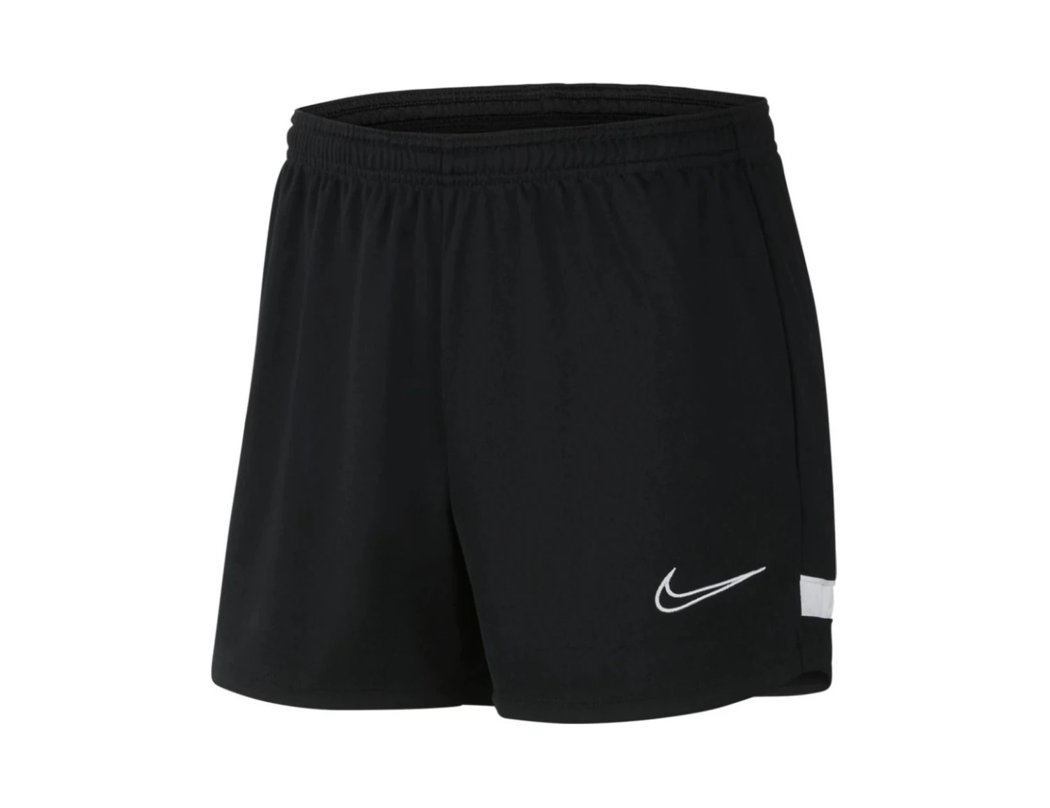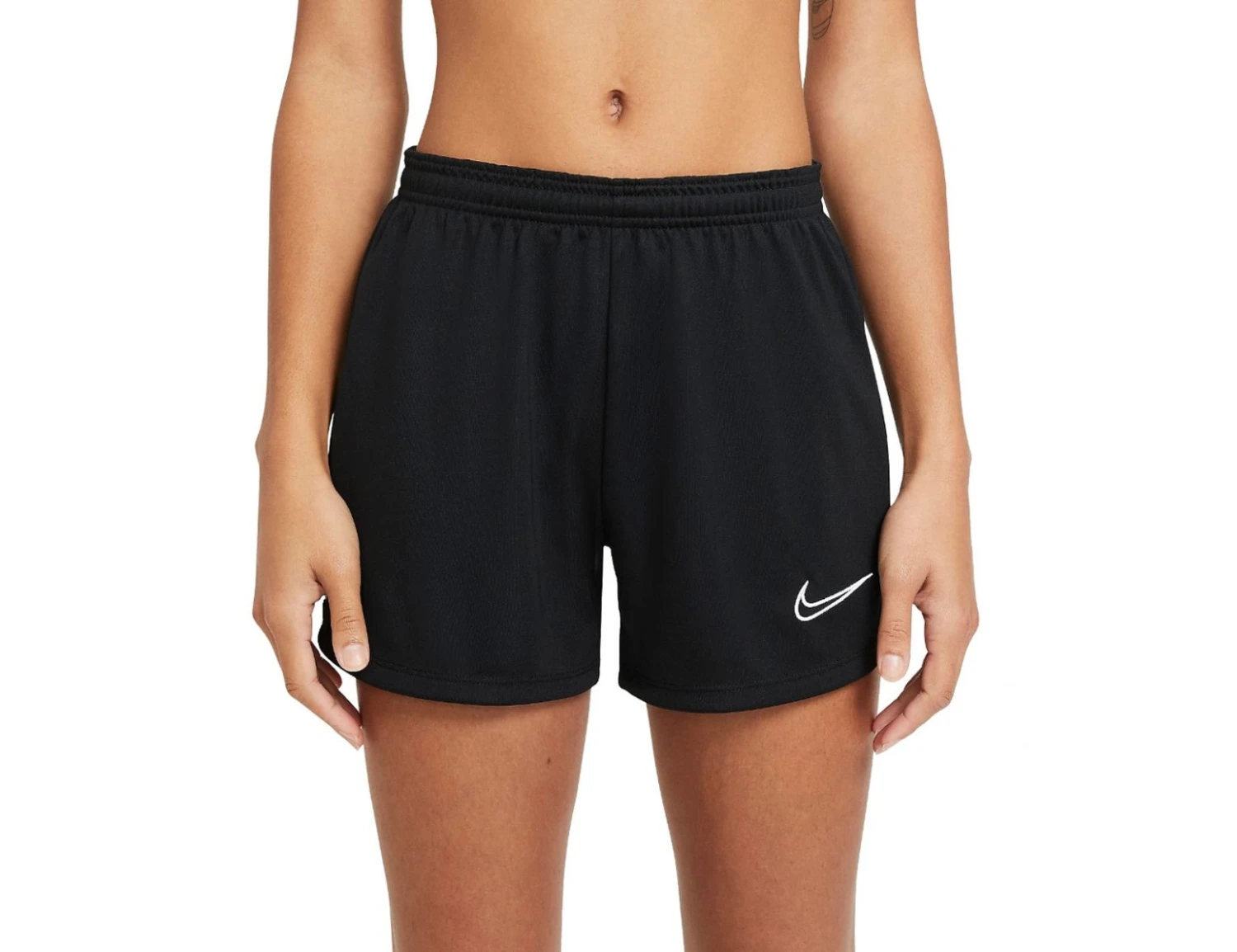 Die schwarzen Nike Dri-FIT Academy Knit Shorts für Damen sind aus weichem und feuchtigkeitsregulierendem Dri-FIT Material, welches den Körper trocken hält. Die Shorts haben einen elastischen Bund mit Kordelzug, ein gesticktes Logo auf der Vorderseite und weiße Mesh Einsätze auf der Beinrückseite.