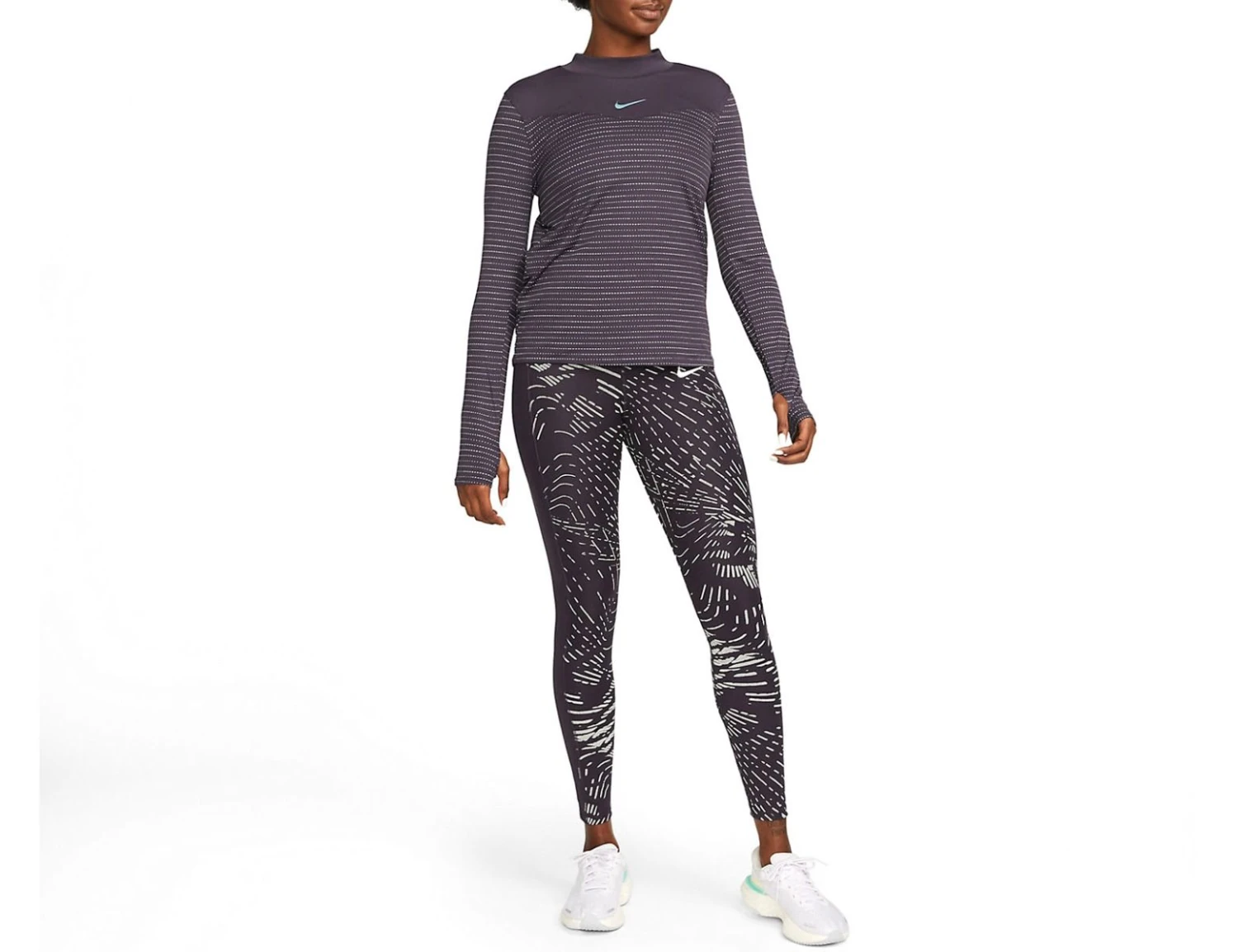 Die Nike Dri-Fit Run Division Fast Leggings hat einen hohen, elastischen Bund. Das weiche Dri-FIT Material leitet die Feuchtigkeit von der Haut und die Laufhose hat eine kleine Tasche auf der Rückenseite. Die Hose hat reflektierende Details.